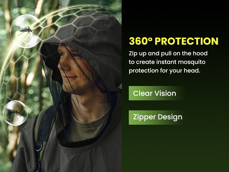 Designed to combat rising temperatures, it features a 360° zip-up hood for clear-vision protection and underarm mesh for maximum airflow. Our tightly woven, eco-friendly recycled fabric blocks tiny pests while remaining snag-resistant. With adjustable drawstrings at the hood, wrists, and hem, you get a custom, bug-proof fit that respects the planet. High-performance relief for every summer adventure.
