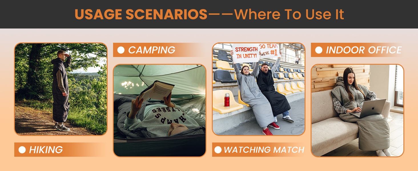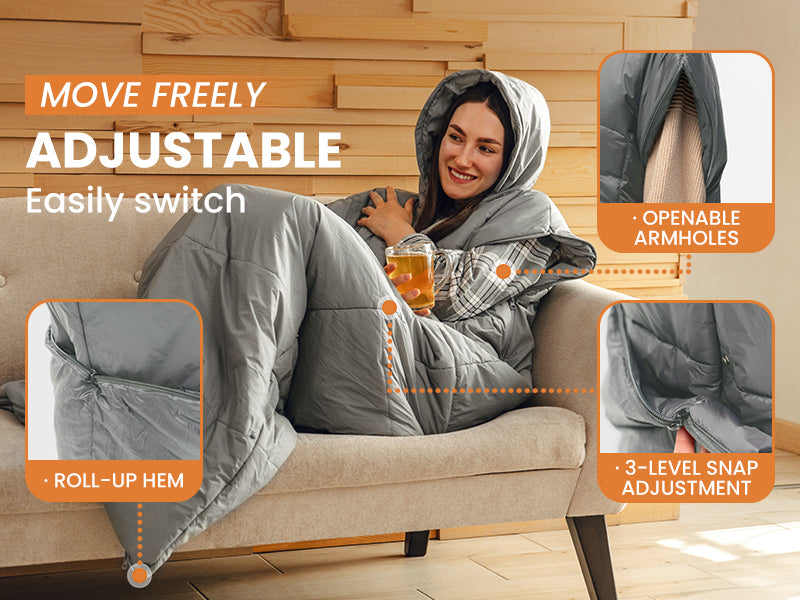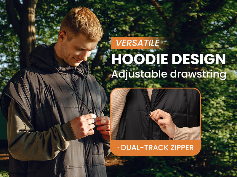 Versatile Sleeveless Design: Our hooded wearable sleeping bag features a unique sleeveless design with zippered armholes, allowing you to easily adjust the level of warmth and comfort while sleeping