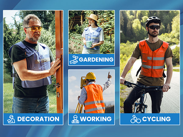 This cooling vest is designed with meticulous attention to detail, combining exceptional cooling performance with essential safety features. Equipped with high-visibility reflective strips, it is the perfect summer gear for outdoor professionals and cyclists who demand both comfort and protection in extreme heat.